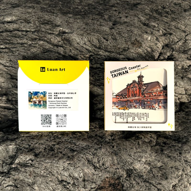 【印象臺中|時光印記】臺灣檜木杯墊 杯墊以「時光印記」為核心,選用臺中百年的兩大歷史地標建築——湖心亭與舊火車站,結合具代表性建築的歌劇院,展現城市新舊融合的獨特魅力。將各地標意象與日常生活用品結合,賦予木質禮品深厚的人文意義: 臺中舊火車站【百年驛站.承載臺中】:見證臺中起點與歷史脈動。 臺中公園湖心亭【圓滿如意.富市臺中】:傳遞圓融和諧與臺中繁榮的願景。 臺中國家歌劇院【卓越非凡.藝動臺中】:演繹現代藝術與臺中的無限生命力。 作品落實「越在地、越國際」的設計精神。我們堅持選用國寶級的「臺灣檜木」,優先選用高品質家具邊角料製作,賦予木料第二個生命;保有其天然檜香芬芳與雅緻紋理,延續檜木歷史軌跡與木材香韻。 透過雷射雕刻技術,我們將回憶與特殊意義紀錄雕刻在木頭上,讓人們「看不見的心意」一步步變成「摸得見的感動」。背面以感性日常語句及中英對照,展現國際視野。背面可客製圖案、文字及品牌單位名稱等內容,提升紀念性及商品多樣性。