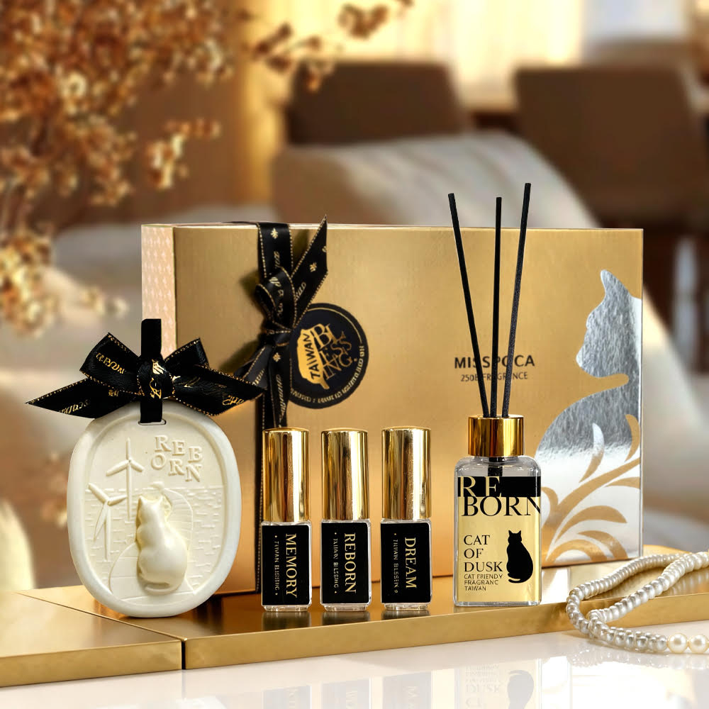 【香氛故事】 《Reborn|暮色裡的貓與光》 是一段能帶回家的台中風景, 也是一份在心裡點亮的溫暖祝福。 靈感源於高美濕地落日時分── 貓靜坐在最後一束微光前,守著那道尚未離去的希望。 提醒著我們:即使走過低谷,光,終會再次照耀。 【香味感受】 🌅 濕地暖光 × 重生微光的香氣旅程 承載高美濕地的潮汐、暖光與重生的希望。 前・中・後調映照景與心境,像坐在濕地,看見那道光再次亮起。 前調|佛手柑 — 明亮清新,象徵新的希望 中調|岩蘭草 — 濕地氣息,彷彿身處高美 後調|癒創木 — 暖心木質,收進夕陽光輝 【商品特色|6 大亮點】 1️⃣ 城市香氣 × 祝福寓意 香氣以高美濕地「從暮色到黎明在是亮起」的色溫轉變為靈感, 將希望、陪伴支持化為香氣故事。 療癒木質 × 潮潤大地 × 明亮柑橘, 彷彿坐在濕地看著夕陽落下、心中光亮再次升起。 2️⃣ 台中景致-高美濕地限定造型擴香掛飾 夕陽、倒影、風車與貓剪影交融,讓風景成為可收藏的香氛藝術。 適用車內、衣櫃、工作桌等多情境, 是最具「台中辨識度」的伴手禮之一 3️⃣ 多種禮盒規格 × 送禮情境一次滿足 多種實用組合搭配, 從個人收藏到重要贈禮皆可完美對應: ・香氛噴霧|衣物、空間、隨身皆宜 ・造型擴香掛飾|陪伴移動時刻 ・擴香瓶|營造安心背景香氣與儀式感 不同價位卻同樣精品,讓選擇更從容,送禮更貼心。 4️⃣ CFP+ 寵物友善 × 無酒精溫柔香氣 MISSPOCA 獨家寵物友善香氛配方 全成分經 COA / SGS / IFRA 多重安全標準核可 親子家庭與毛孩安心共享。 5️⃣ 永續 FSC 認證包材 × 對土地的溫柔回應 FSC 森林永續紙材,以友善地球的方式呈現精品美學。 香氛是一份禮物,也是一種心意: 溫柔對待生活,也溫柔對待土地。 6️⃣ 國際伴手禮規格 × 儀式感美學 夕陽金盒 × 高雅黑金緞帶,開盒瞬間滿載驚喜。 中英日三語標示,讓國際旅客一眼理解、安心選購。 代表台中,也走向世界。
