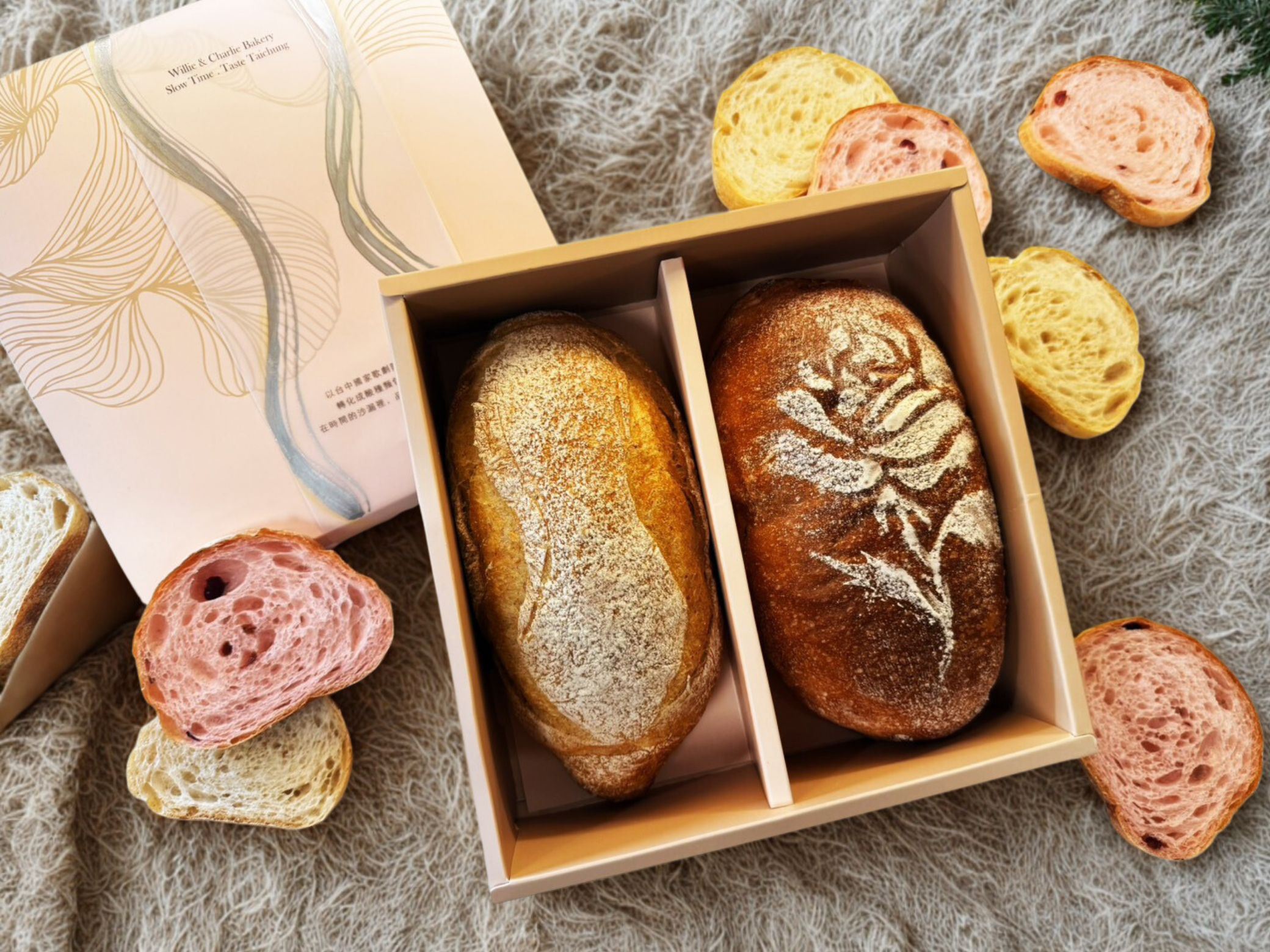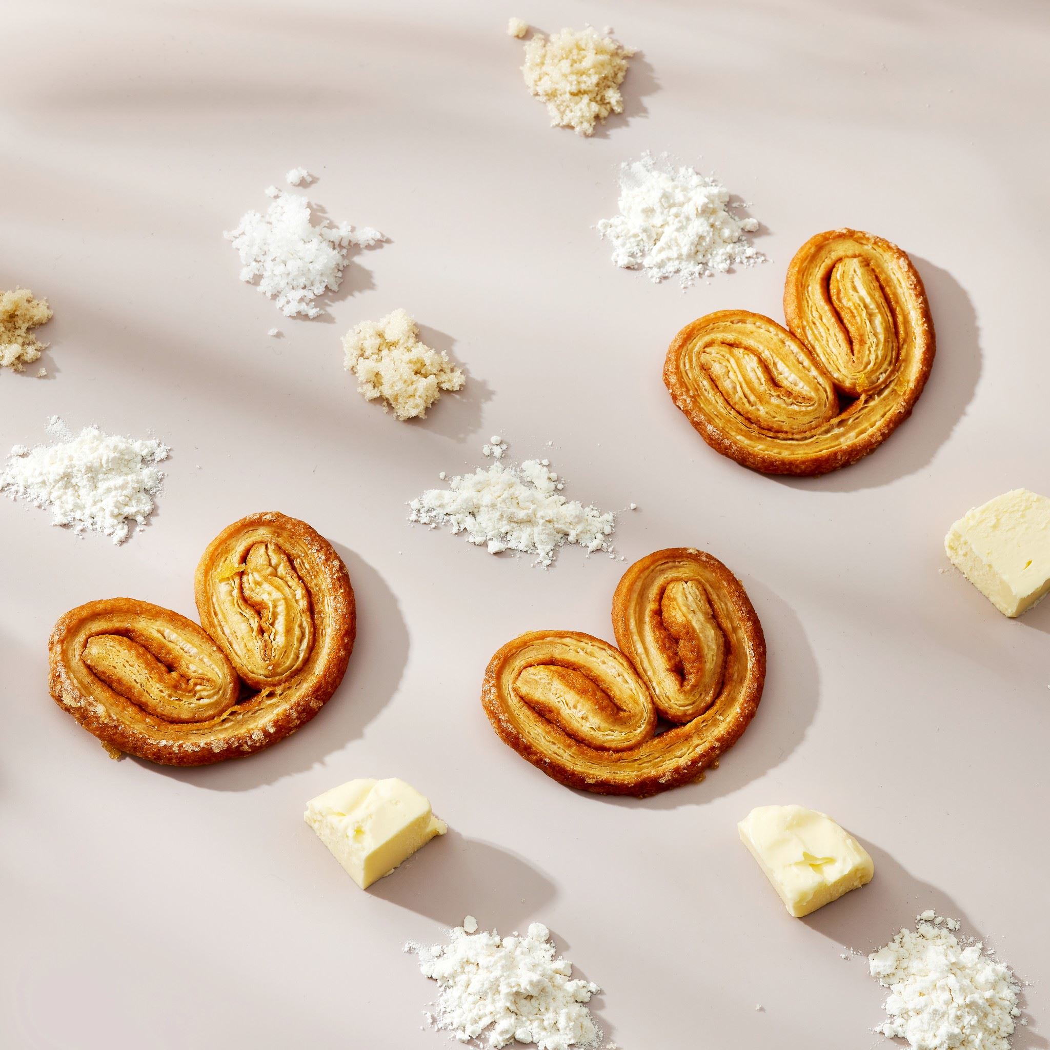 可頌千層酥產品這一兩年大受好評 將可頌產品作成特別的蝴蝶結造型,加上利用獨特的技術將平常可頌內餡無法常溫的保存的劣勢克服。 直接將各種內餡於烘焙過程直接置入可頌內,讓可頌也可以有多種風味,同時也可以常溫保存及送禮。 六種口味包含了覆盆子、百香果、熱帶水果、巧克力等傳統法式口味之外, 另外多了鳳梨椰子和桂花龍眼等較為傳統東方口味的內餡。 滿滿的視覺享受和獨特的風味,不僅送禮大方,收禮的人也可以感受到滿滿的欣喜。